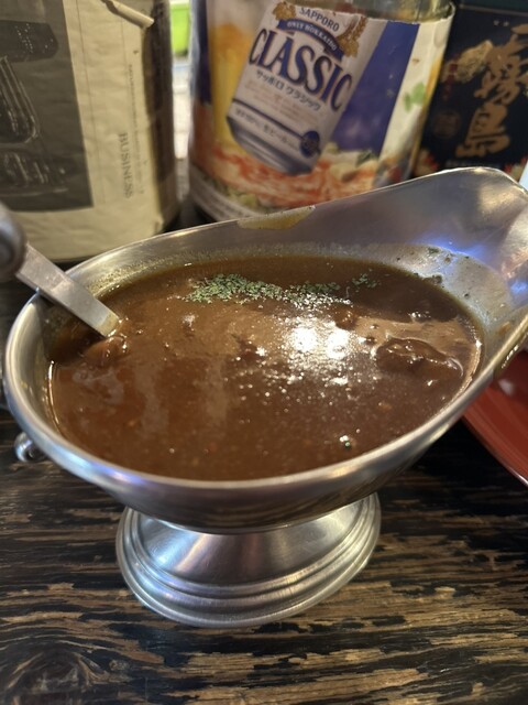 メニューを見ると、牛すじ炙りチーズカレーが有名らしいけど、今回はシンプルに牛すじカレー(1,200円)を普通盛りで注文。