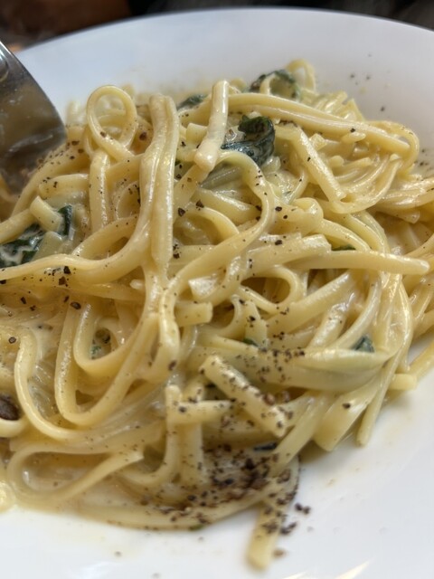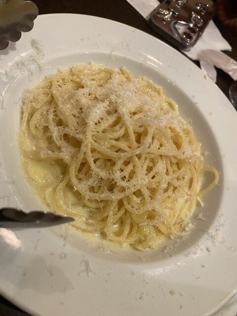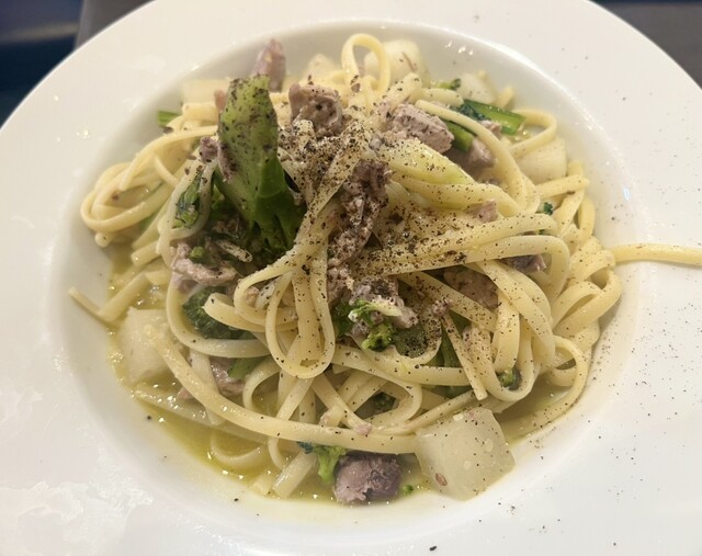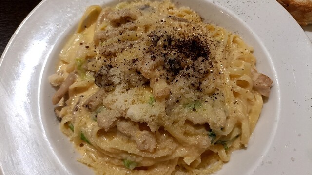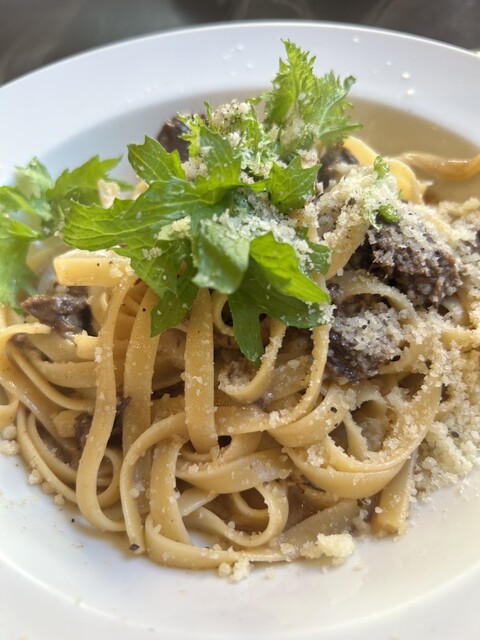 人気店なので期待していたが、パスタの味付けはピンとこず、麺は茹で過ぎのような食感、提供時にすでに少し冷め始めていた。残念。