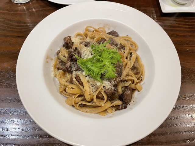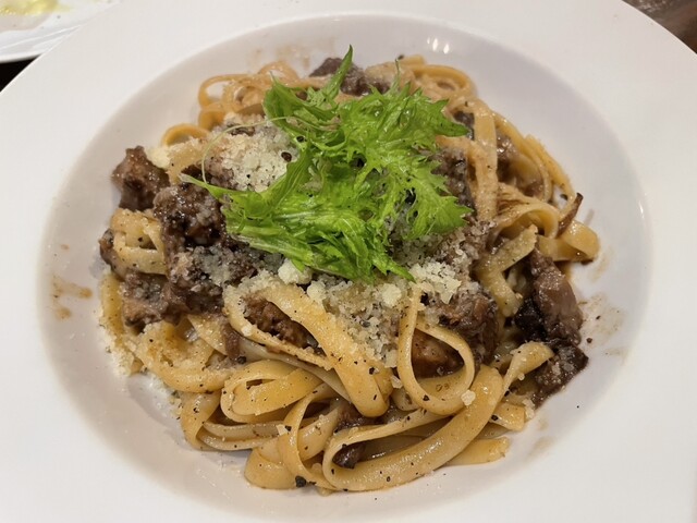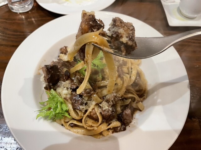 和牛の赤ワイン煮込みソースのフェットチーネ。