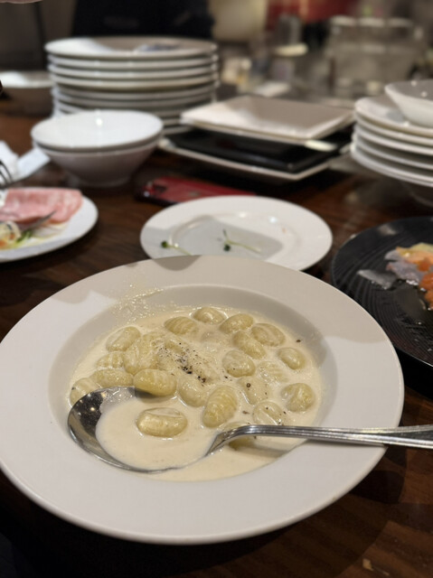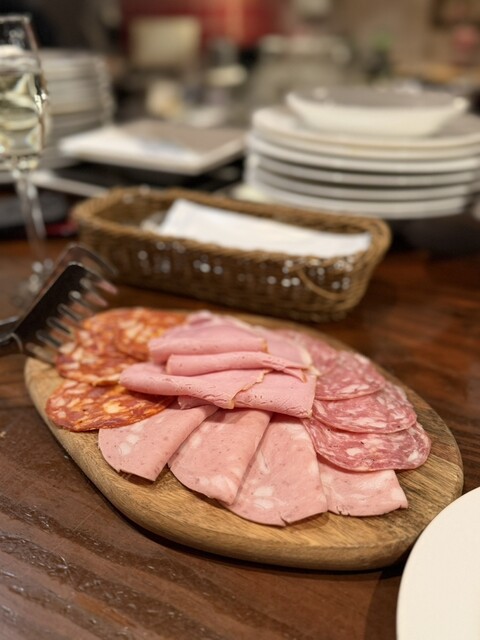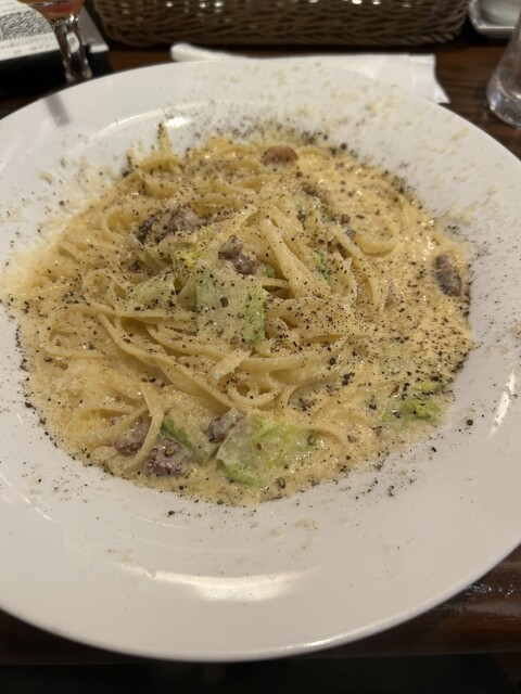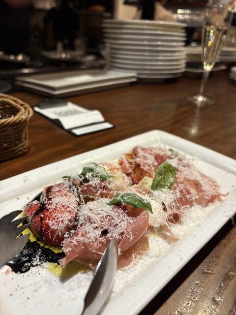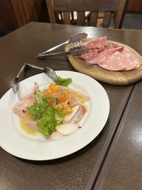 2人で行ったので前菜はイタリアハム盛り合わせ、カルパッチョ、メインはカルボナーラ、モッツァレラとひき肉フジッリ、デザートはカタラーナ、パンナコッタを発注しシェアしました。パスタはどちらも熱々モチモチでボリューム...