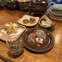 すっかりお気に入りとなったことお店。仲間たち4人との会食で利用しました。予約して個室を用意しておいてもらいました。 頼んだのはいつもの刺身の盛合せ、枝豆、コロッケ、鶏肉の九条ネギソースなど。お酒はビールの後は思い思いに焼酎の前割や知多ハイボールなど。料理にはみんな満足してくれて、低温調理でハム風に... 詳細を見る