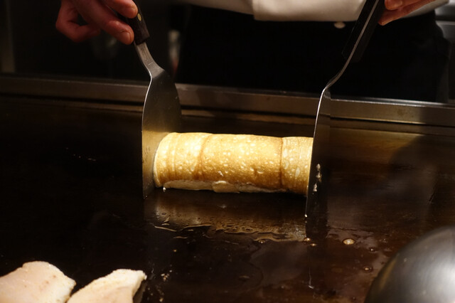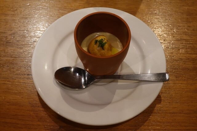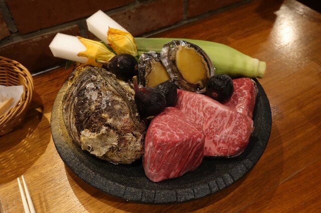 最初に出てきたのは、ウニがのったとうもろこしのムース。とうもろこしの甘さのなかに香ばしさがあって、ウニの濃厚さと合わさるとほんとに美味しかった。スプーンで掬う場所によって少しずつ味が変わっていくのも楽しくて、最初からワクワクさせてくれる一品。 メインの鉄板焼きは、目の前で焼かれる音や香りからし... 詳細を見る