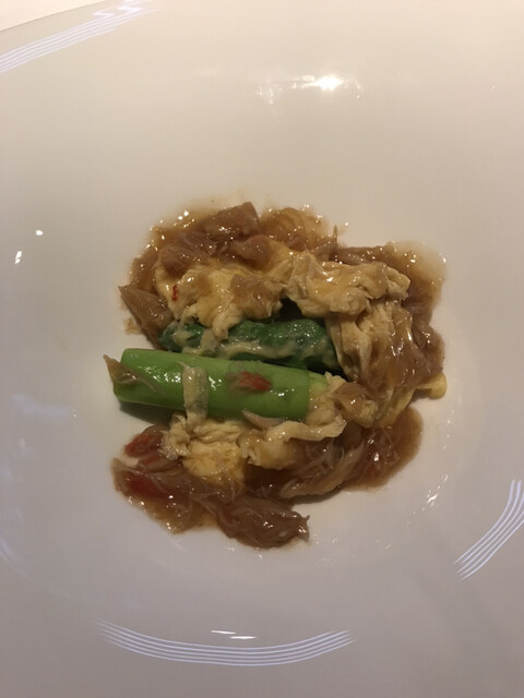 キャビア、オマール海老、タコ、グリーンアスパラ