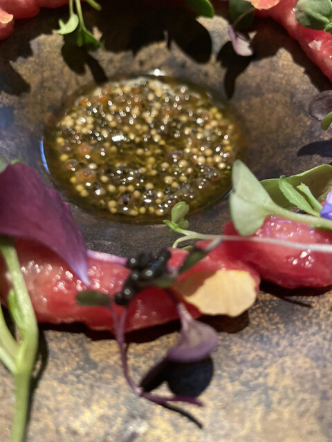 トンブリとマスタードで大好きな粒々でキャビアと共に美味しく頂きました。