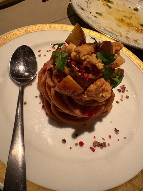 ヤゲン軟骨のアーリオ・オーリオや牡蠣バター、銘柄和牛ランプのステーキ、そしてデザートのモンブランまで、すべての一皿をお気に入りいただけたとのお言葉、シェフやスタッフにとって大変励みになります。