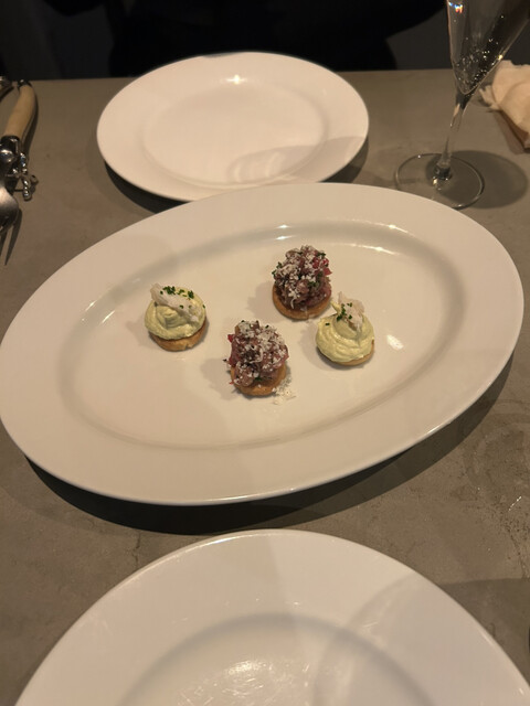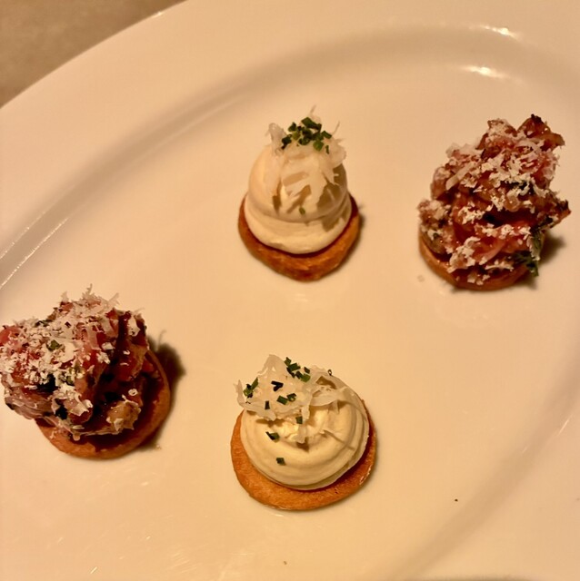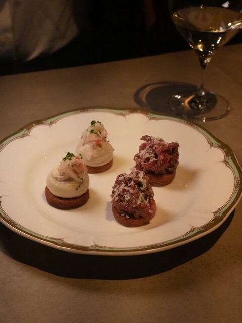 久しぶりにご近所のBistro Boleroさんにて新年のお祝いdinnerと乾杯をしてきました。最初のお料理から絶句ですね。牛肉タルタル乗せ、タラバガニクリームソースをトッピングしたカナッペなAmu...