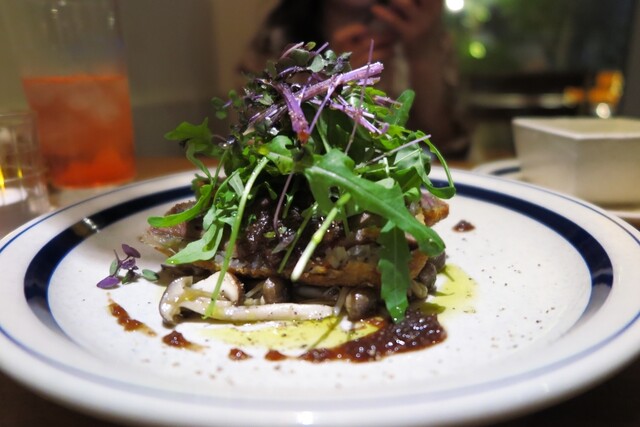 駅周辺の喧騒から程よく離れた緑溢れるロケーション。昼は経験豊富なシェフが作るワンランク上のカフェランチを、夜はソムリエセレクトのワインに合う本格ビストロ料理をご堪能いただけます。テラス席は緑に囲まれた風通しの良い落ち着いたお席です。夜はライトアップされた緑を眺めながらお食事を楽しめます