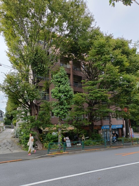 大きなケヤキの木があるマンションの1階、駒沢通り沿いにお店はあります。