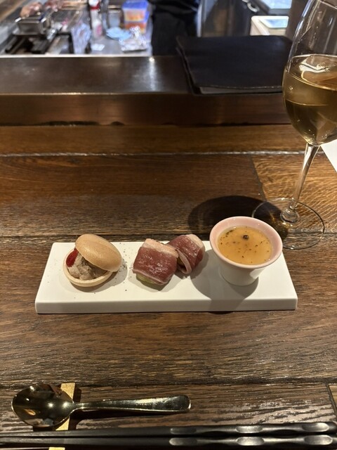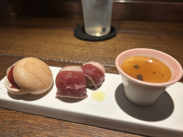 前菜3種からしっかりと鴨づくしで、どのお料理も美味しくいただき...