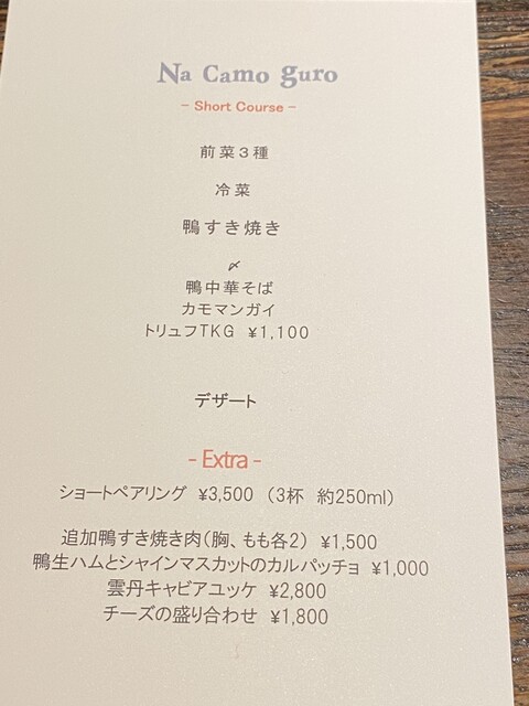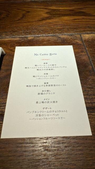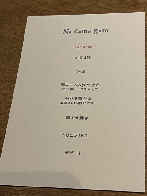「Na Camo guro」は、東京都中目黒駅から徒歩1分ほどのビル2階にある鴨料理屋さんで、「鳥料理 百名店」に選ばれています。