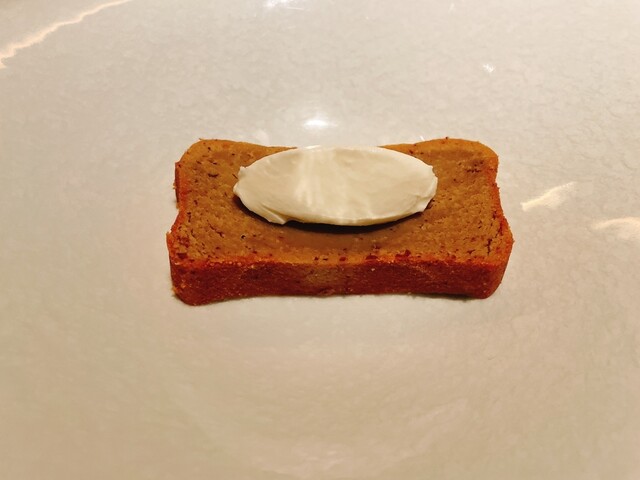 塩と味噌の2種類の味で提供頂きました。個人的な味噌の方が味が濃い目だけどでも上品でとても好みでした。(もちろん塩も美味しかったです。)添えてあるチーズ、胡椒、林檎のピクルス(やや酸味強め)と一緒に食べるとまた違った味を楽しむことが出来ました。