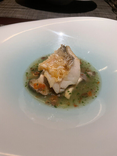皮がカリカリに焼かれていたのが印象的でした。鯛の甘味と味わいあるスープがとても美味しかったです。