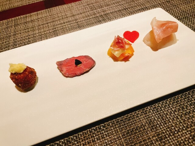 4品のアミューズ。1つ1つは小さいですが、どの品も手が込んでいて美味しかったです。