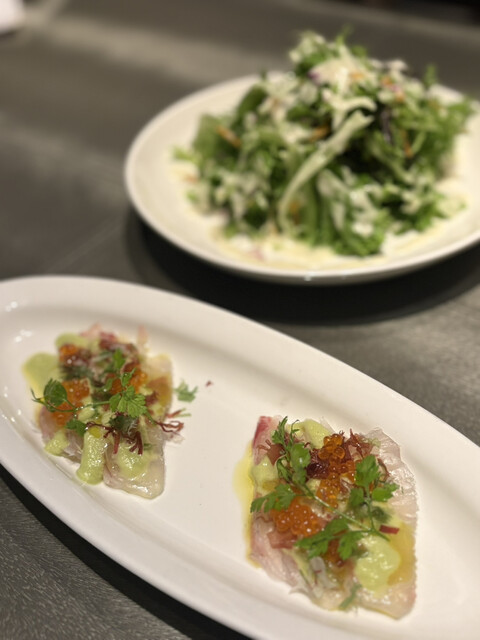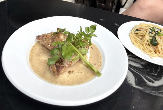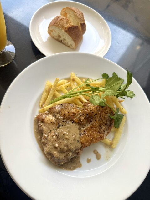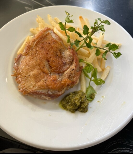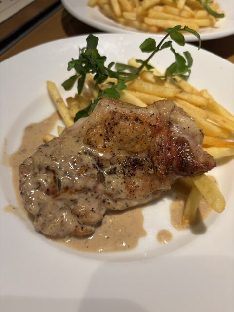 ランチセットで、私は豚肉を連れはサーモンをいただきました。サラダとポテトとドリンクもいただきました。良い雰囲気で美味しくいただきました。次回はテラス席を食事できたらいいなと思いました。駅から近く便利な...