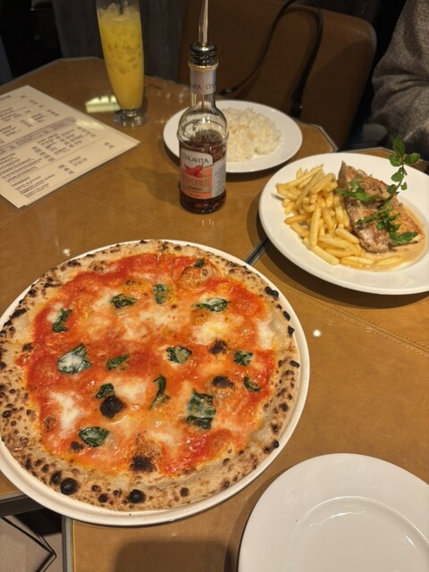 ピザは既製品の生地に載せて焼いただけ?ってくらい微妙です。