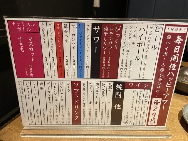 | ドリンク | 日本酒あり、焼酎あり、ワインあり |