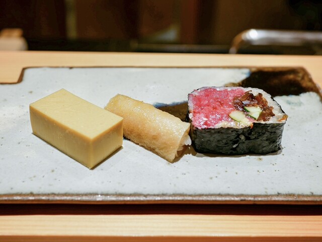 目黒区東山の【鮨つぼみ】さんに伺いました。 お店の場所は東急東横線、地下鉄日比谷線の中目黒駅から徒歩10分弱の野沢通り沿いです。 今回もお昼に伺い、つまみからにぎりのおまかせコースを頂きました。 ◆この日頂いたおまかせコースの内容 〇つまみ ①クエのお椀 クエは表面を炙りレ... 詳細を見る
