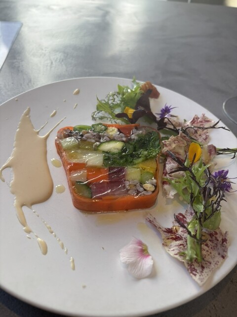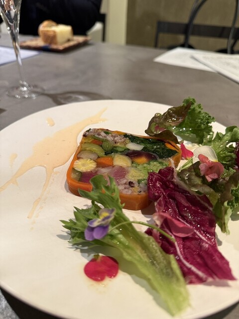 妻と年末のお疲れ様会でランチに行きました。素材を引き立てる調理法で全ての皿が瑞々しくてとても美味しかったです。スペシャリテのテリーヌは隙間なく50種類の野菜が敷き詰められていて宝石箱のようでした。サー...