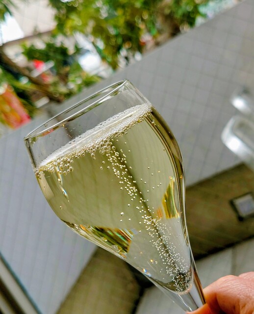 お昼に予約して来店。シャンパン付き5700円のランチコースをいただく。