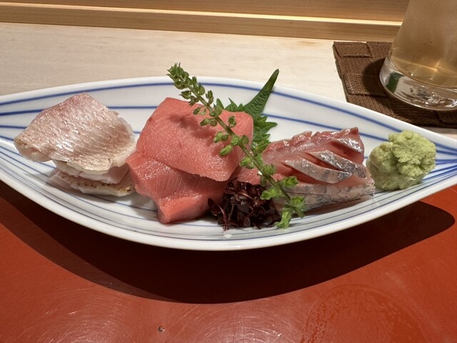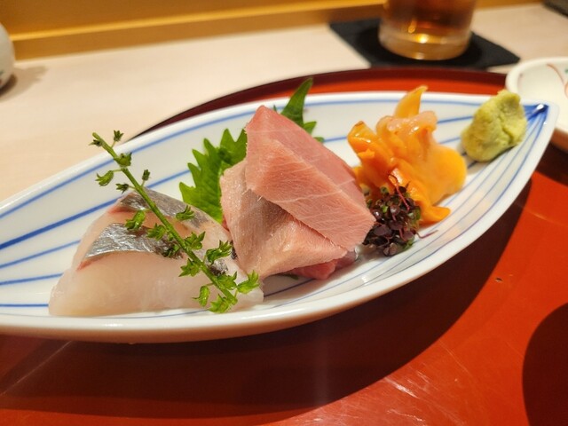 ランチに何回食べに来たことがあるこのお店、夜初めて訪問した。 刺身の盛り合わせは、素材の鮮度が際立っていて口に残る余韻も心地良い。 焼き魚に茶碗蒸し、握りはまぐろが特に美味しく感じた 大将が今日のまぐろは若いとおっしゃっていたが、普段はもっと熟成させて提供するようだ。 それでも、... 詳細を見る