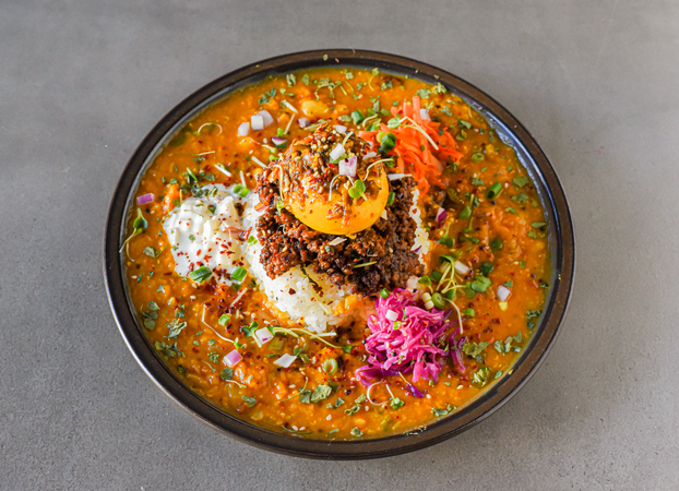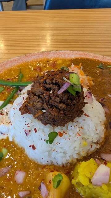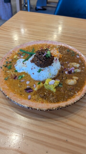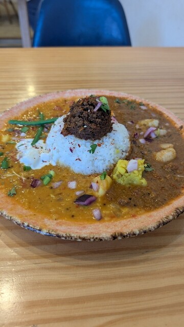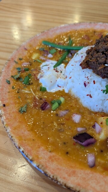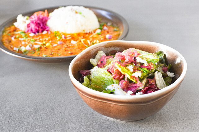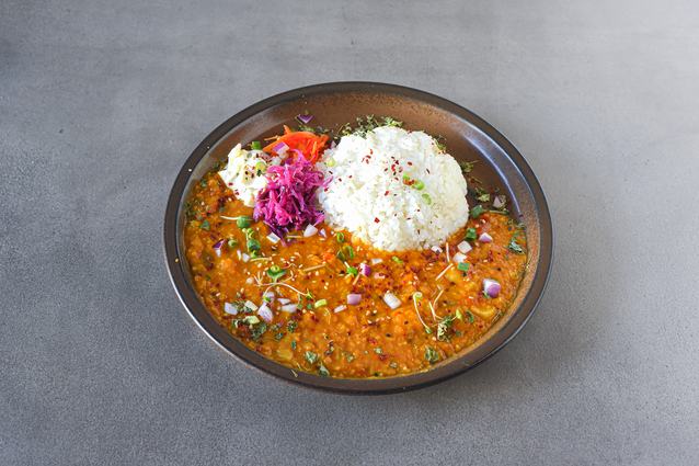 たっぷりの野菜をじっくり炒めて凝縮したカレーベースに、独自にブレンドした挽きたてスパイスが絶妙にマッチ!丁寧に作るこだわりカレーは一口食べれば箸が止まらないこと間違いなし!