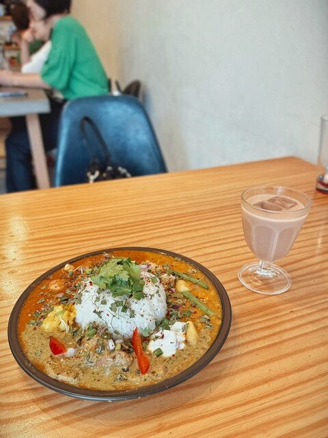 店内比較的広めで、席を詰め込んでないので、居心地良いです。カレーのセンスも良いし日替わりメニューがあって、3種のカレー等に組み込めるのでバリエーションが色々楽しめそうで良いと思いました。スタッフの方の対応も気さくで、ゆったりできました。