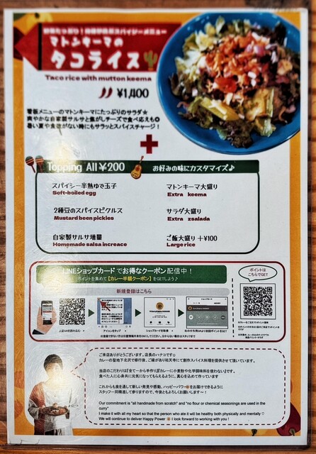 | サービス | テイクアウト、デリバリー、複数言語メニューあり(英語) |