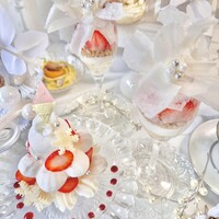 大切な方を華やかにお祝いするためのコースです♡ 中目黒のイベントシーズンのアフタヌーンティーは初めてのテーマ【Pearl White】♡ チュイールでできたパールフラワーのパルフェだけでも贅沢な存在感なのに、 パブロバとショートケーキを掛け合わせたいちごのツリーケーキまでついた、充実のラインナップ! グラスに隠れるスノーマンとちっちゃなクマちゃんもかわいい♡ そして、真っ白な木に付いたお家の中にはボンボンショコラが隠れております♡ 店内は真っ白な空間とパール、キラキラの結晶など、異世界に迷い込んでしまったかのような素敵な空間になる予定です。お楽しみに!