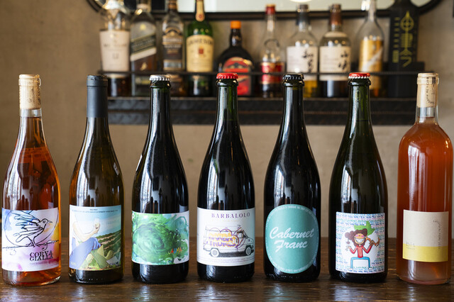 豊富なナチュールを日替わりでグラス、ボトルで楽しめます。その他ウィスキーやジン、焼酎もさまざまな種類を取り揃えております。