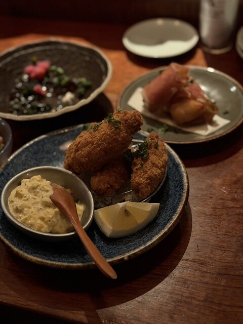 土曜日直前で予約 18時過ぎ訪問 ドリンク2〜3倍 6000円前後/1人 入り口がとても分かりずらいので注意 ※写真参照 入店して薄暗いオレンジライトに照らされるカウンター型の店内はすでに雰囲気良し カップルが6割占めてる感じですが、テーブル席もあり大人数でも◎ 着席... 詳細を見る