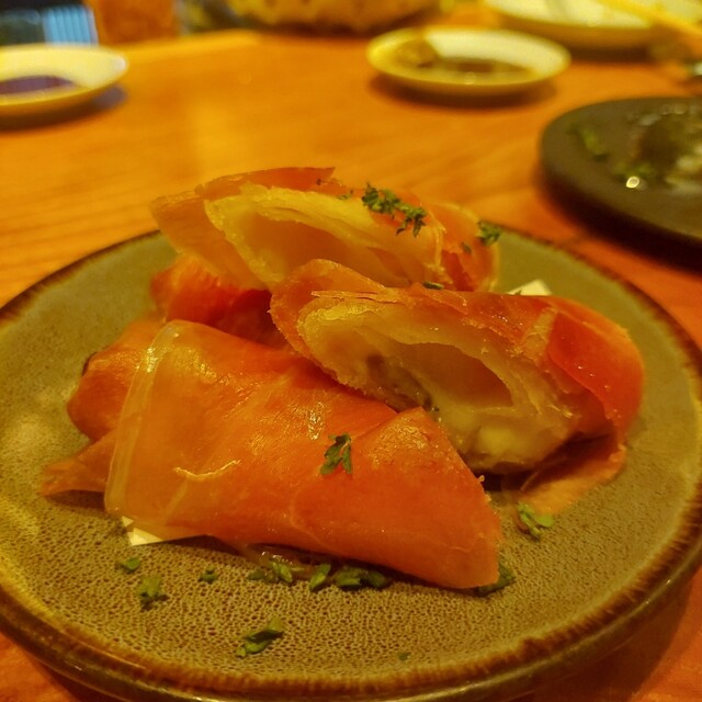 →これすごい!生ハムが巻いてあるのですが、生ハムの塩気と揚げ春巻のジューシーさがマッチ!
