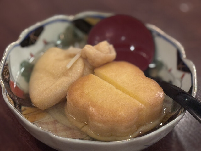あとから知った、完全予約制のお店に、たまたま空きがあり入店。初回客限定のおもてなしで、まずは出汁をひと口。 その瞬間に、ここは“ただのおでん屋ではない”とわかる。 定番の具なのに、味も食感も“定番”の枠に収まらない完成度、安心するはずの定番が、毎回小さく驚かせてくる。 素材そのものの良... 詳細を見る