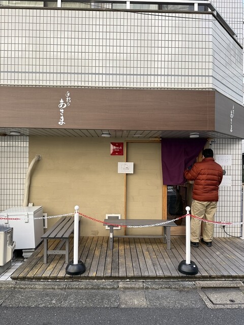 中目黒駅から5分くらいでしょうか。11:30開店で10:30頃にお店に到着。他に誰もお客さんはいない。まだ準備中で、お店の前はチェーンがかかってました。11時頃、お店の方が店前のベンチをセットしてくれて、店前3人ベンチ、お店入口を空けて店横の角から並ぶ感じだ(並び方の紙が貼ってある)。開店8分前に案... 詳細を見る