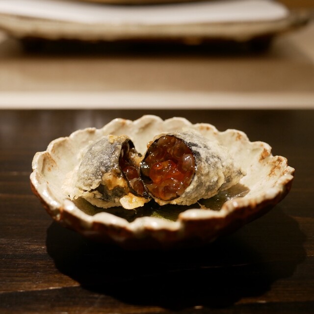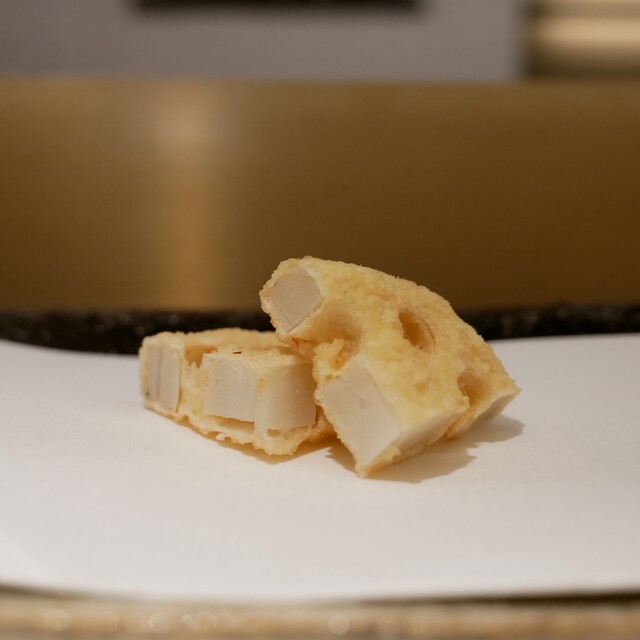 OMAKASEで予約を取って訪問。平日の午後6時、一斉スタートのようである。カウンター12席ほどのお店。揚げ場が二つあり、一方では大将と思しき人が揚げ、もう一方ではお弟子さんが揚げる。大将が揚げるかどうかでお値段が違うという話も聞いたことがあるが、よく分からない。自分たちはお弟子さん(橋本氏)が揚げ... 詳細を見る