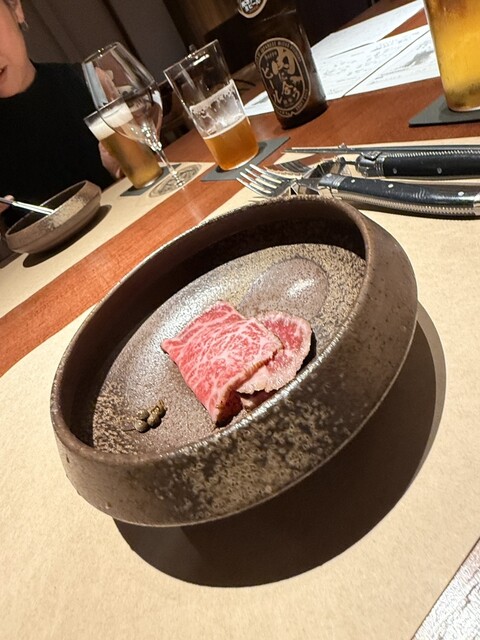 神戸牛のコースを。肉質は中勢以の安心感血統書付き。スタッフの方の肉知識が半端なく、色々教えてもらえた。日本は仔牛はダメなのね。