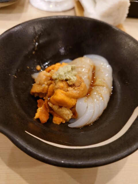 今日は一時帰国した娘と2人で訪問。お刺身3種から始まり、生ガキ、米ナス田楽、いかのウニあえなどなどをつまみながら、焼酎のロックをグビグビやる。握りは北寄貝、穴子、ヒカリモノ、巻物等を食し、1人9000円。今夜は食べ過ぎだな。普段使いにはもってこいの待ちのお寿司屋さんですね。