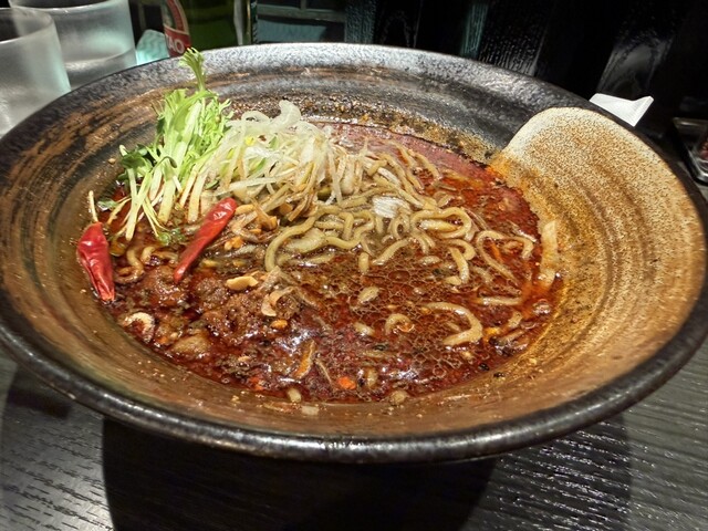 コチラも久しぶりの訪問です。 店頭を見る通り、メチャ辛い系のラーメン 担々麺が人気のお店で、麻婆豆腐も絶品 ですが・・・(^-^) あえて、普通のラーメンも超オススメします。 数年ぶりに訪問したお店は改装しており 店内はちょっと変わっていました。 しかし、黒を基調の内装は以前と... 詳細を見る