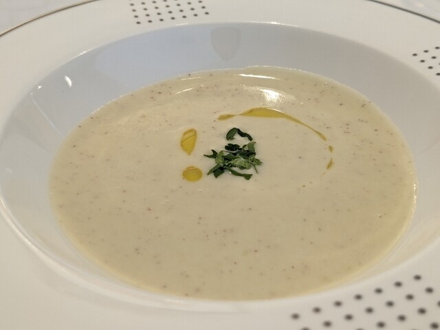 お皿にもこだわり、丁寧に一品一品を作っている感じが現れています。スープから前菜、パスタ、魚料理、肉料理、デ...