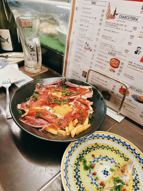 用事で学芸大学駅へ。 終わったのは18時頃だったこともあり、フラフラとこちらに吸い込まれていきました。 なんだか、美味しそうな匂いがしたので。(笑 うだるような暑さの中、なにはともあれ生ビールで乾杯。 生き返ります。 ごはんは、 ・スペイン風オムレツ ・えびのアヒージョ、パンを添えて ・タコのガリシア風 ・クロケッタセット ・サーモンとアボカドのタルタル などをお願い... 詳細を見る
