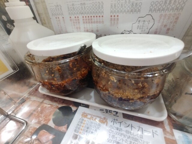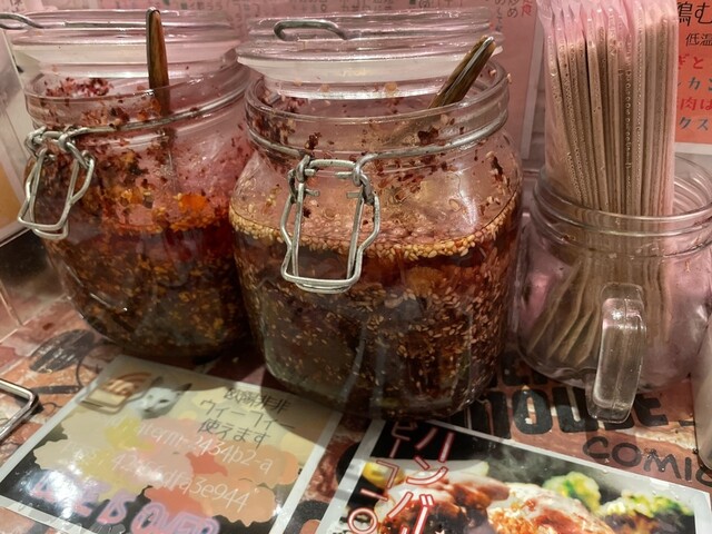 ★大盛無料で自家製食べる辣油、食べる醤油もあります。