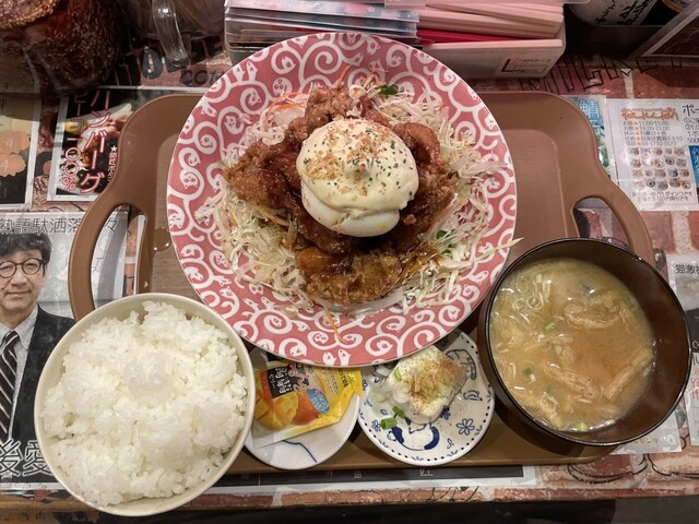 学芸大学駅の東側の商店街に入ってすぐ本屋の手前を右折した細めの通りの先にある定食屋さん。 カウンターメインに入口にテーブル席もあります。 メニューやら色んなものが貼られていたりして色々目移りするある意味ガチャガチャした内装です。 平日の11:40ごろ伺って一番乗りでした。 迷った挙句、宮崎チ... 詳細を見る