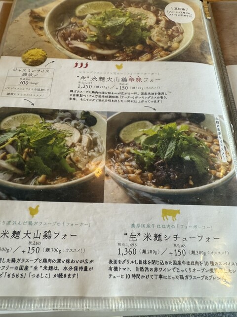・“生”米麺 大山鶏フォー(麺大盛り) 1,365円(税込)