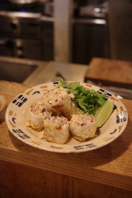 学芸大学から歩いて5分、雰囲気がおしゃれなベトナム料理屋さんでした。カウンター席が8席くらいあってテーブル席が入り口にあるのみでこじんまりした佇まい。
