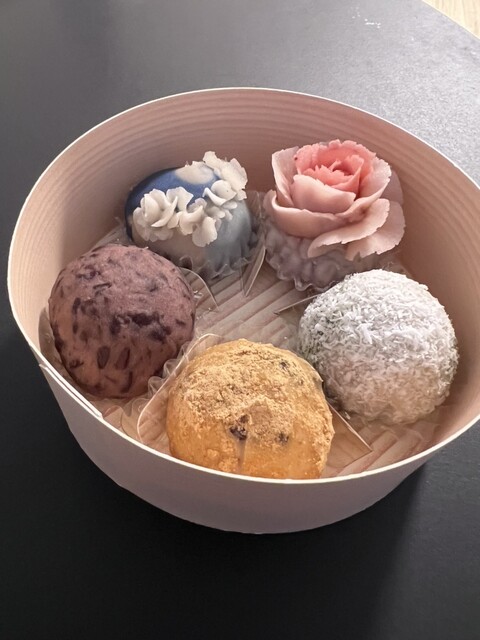 三件集まったところがあります。ここはおはぎ。