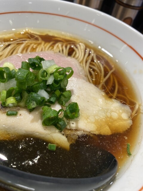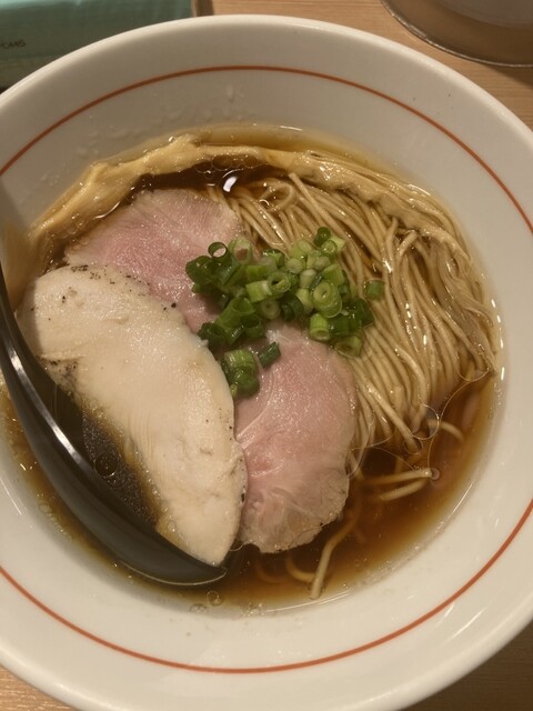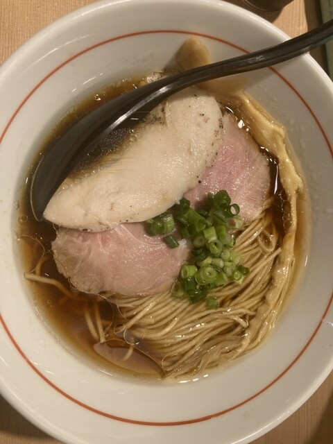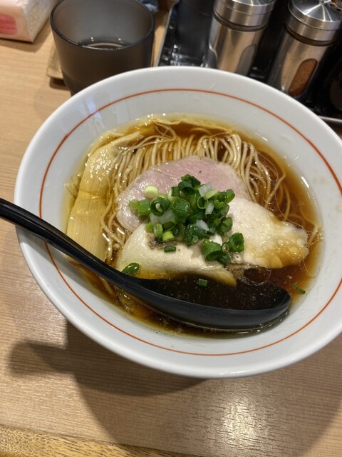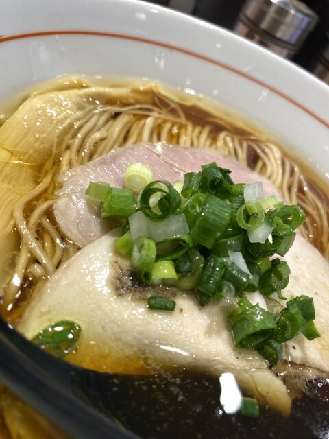 スープは鴨と鶏の出汁。醤油も濃過ぎず鶏油のコクも加わって美味しい。好き。
