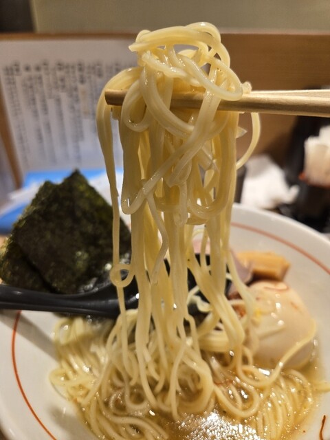 日曜の昼12時10分ごろ訪問、店内は満席に近い盛況振り、相変わらず流石です。5カ月振りの学大ランチ、異動後初の学大です。ランチは何にするか悩んだけど、こちらの冷やし煮干しそばを思い出しこちらに決めました。 着丼、具が見てるだけで涼しさを感じます。先ずはスープを……、美味い!キリッと締まった煮干しス... 詳細を見る