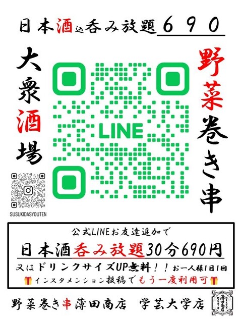 | ドリンク | 日本酒あり、焼酎あり、日本酒にこだわる、焼酎にこだわる |