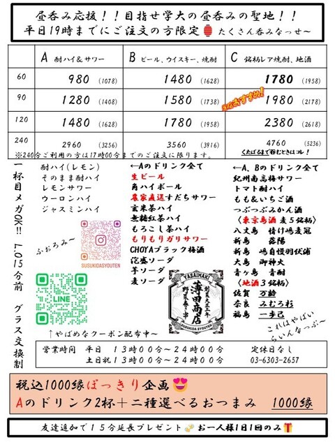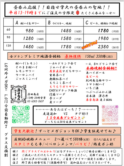 | コース | 飲み放題、3時間以上飲み放題 |