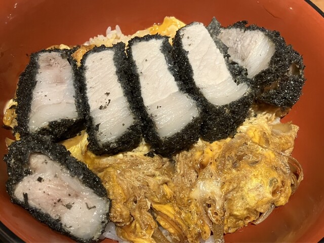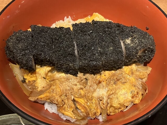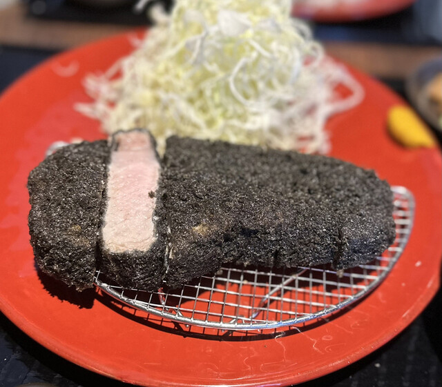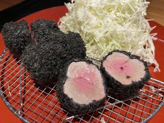 黒とんは鹿児島の六白黒豚という高級品種。衣も黒い。黒いのは竹炭...