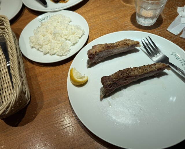 水菜のサラダはランチセットについてきますがしょっぱかったのが残念。スペアリブはナイフも要らず、スプー...